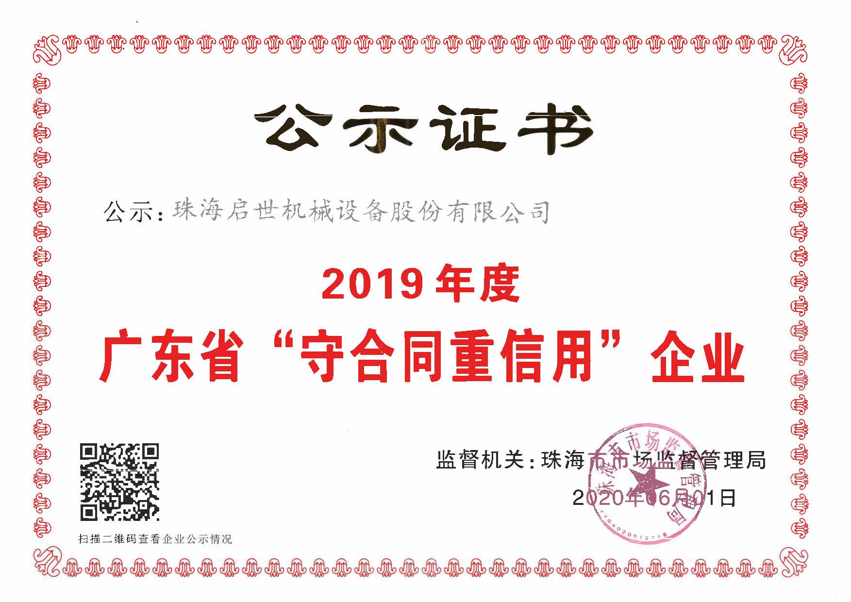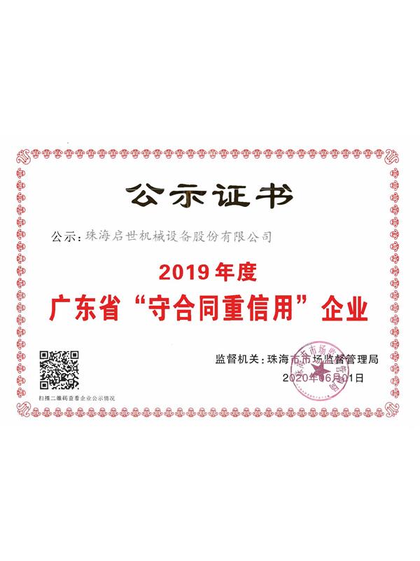 廣東省守合同重信用企業證書