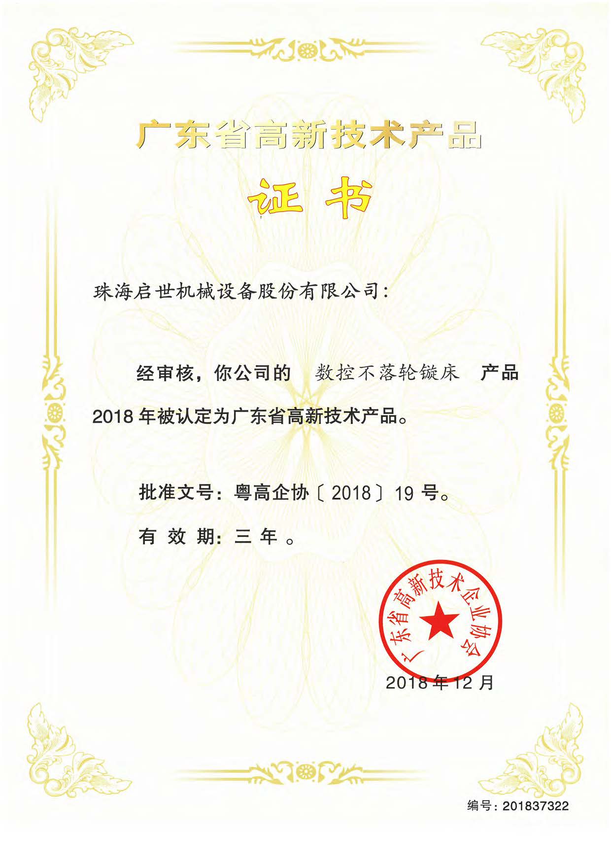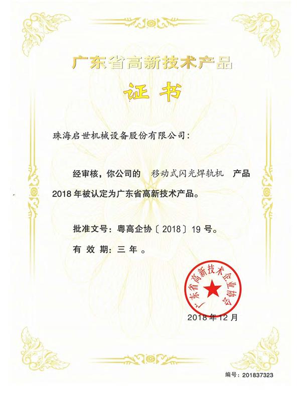 廣東省高新技術產品證書