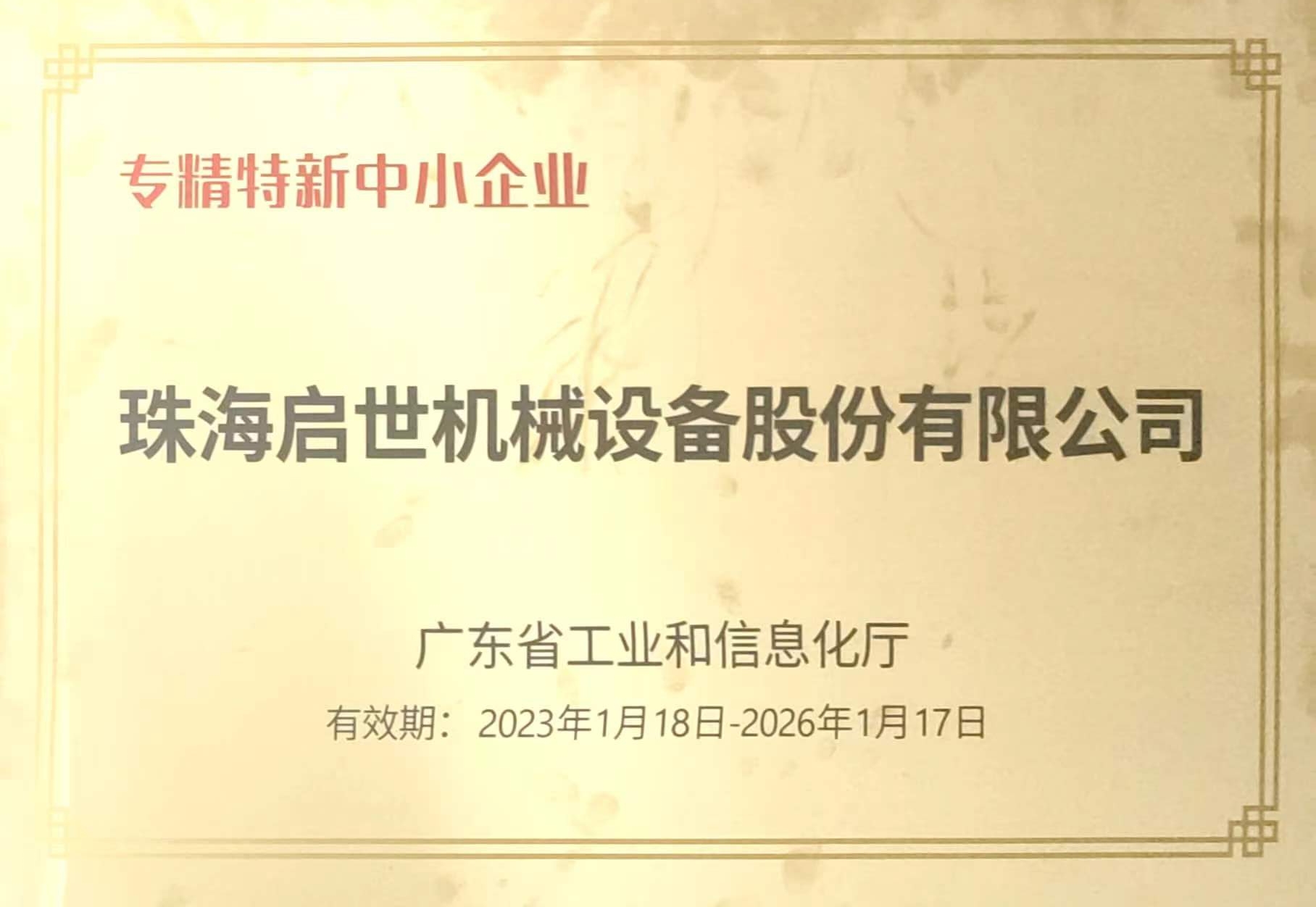 省專精特新證書